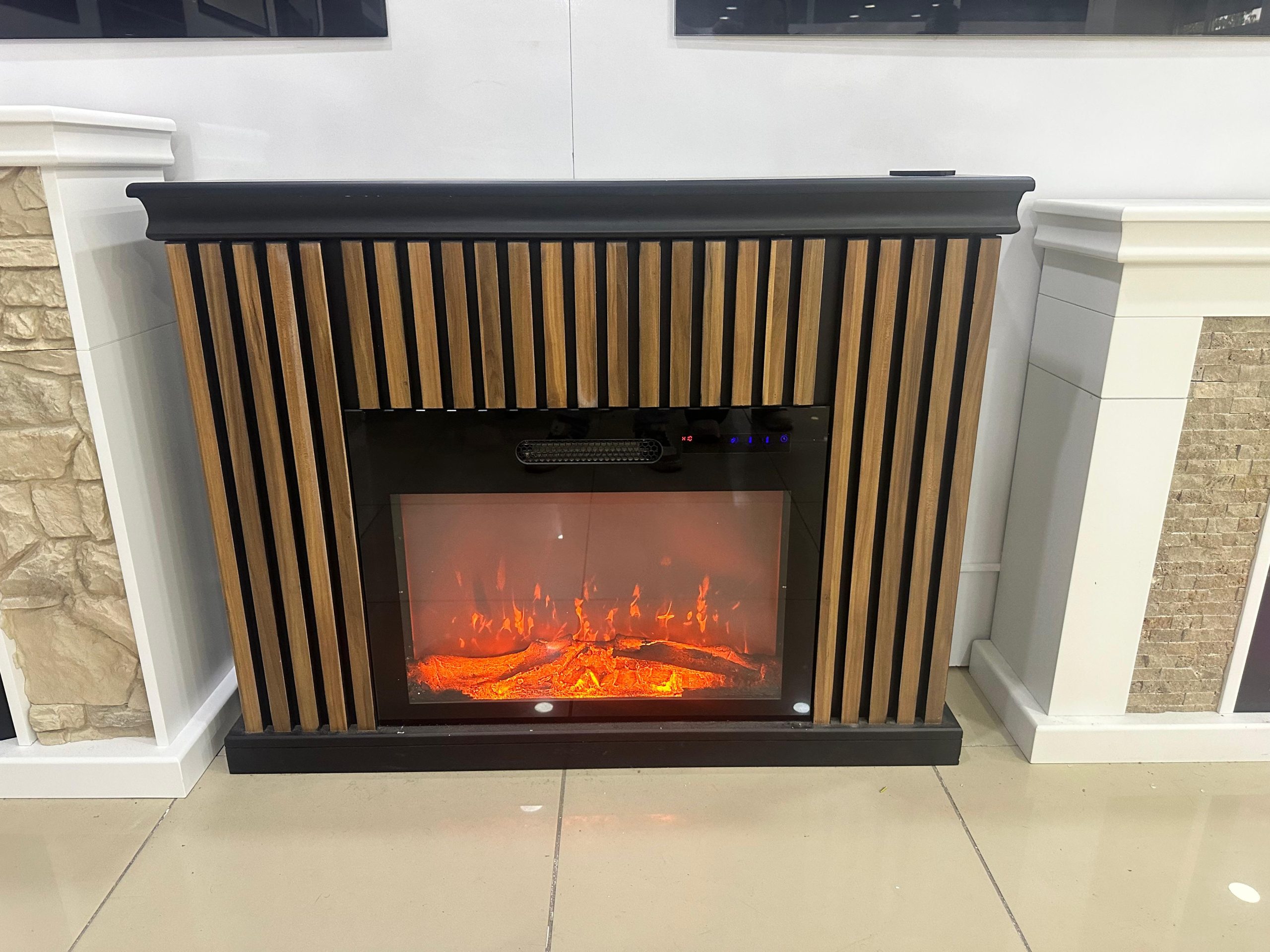 Dekoratif Beyaz Kasalı 118 Cm 8 Renkli Elektrikli Şömine Isıtıcı Bluetooth, Alev Sesi, Wifi (Kopya)
